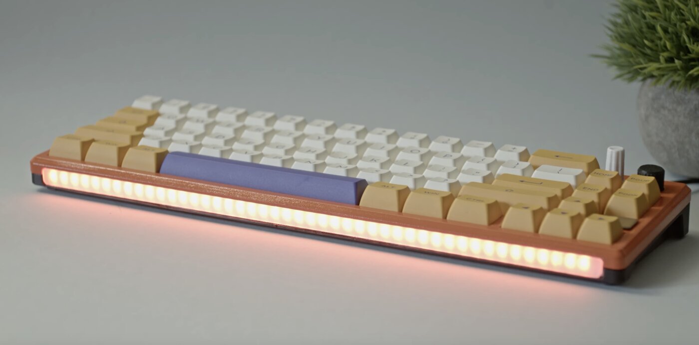 a handwired 65% keyboard with 2 rotary knobs and led front panel